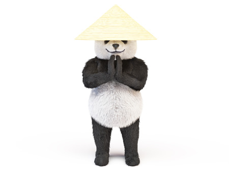 リラックスしたカンフー パンダ アジア麦わら帽子立っている尊重ナマステ挨拶姿勢握りしめられる手に集中しました 動物帽子コレクター米で中国武術を従事しています かわいいクマのイラスト の写真素材 画像素材 Image 4570